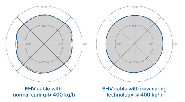 Our Round Value Package Premium is tested with more than 25 strictly controlled and comparable trials. The new revolutionary curing technology increases VCV line curing capacity and simultaneously improves HV and EHV cable core roundness.