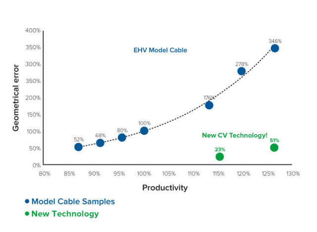 Optimal roundness is essential for efficient use of insulation material on a CV line. Cutting down material overuse is one of the biggest contributors to production productivity in pre-molded and pre-fabricated joints and terminations as well.